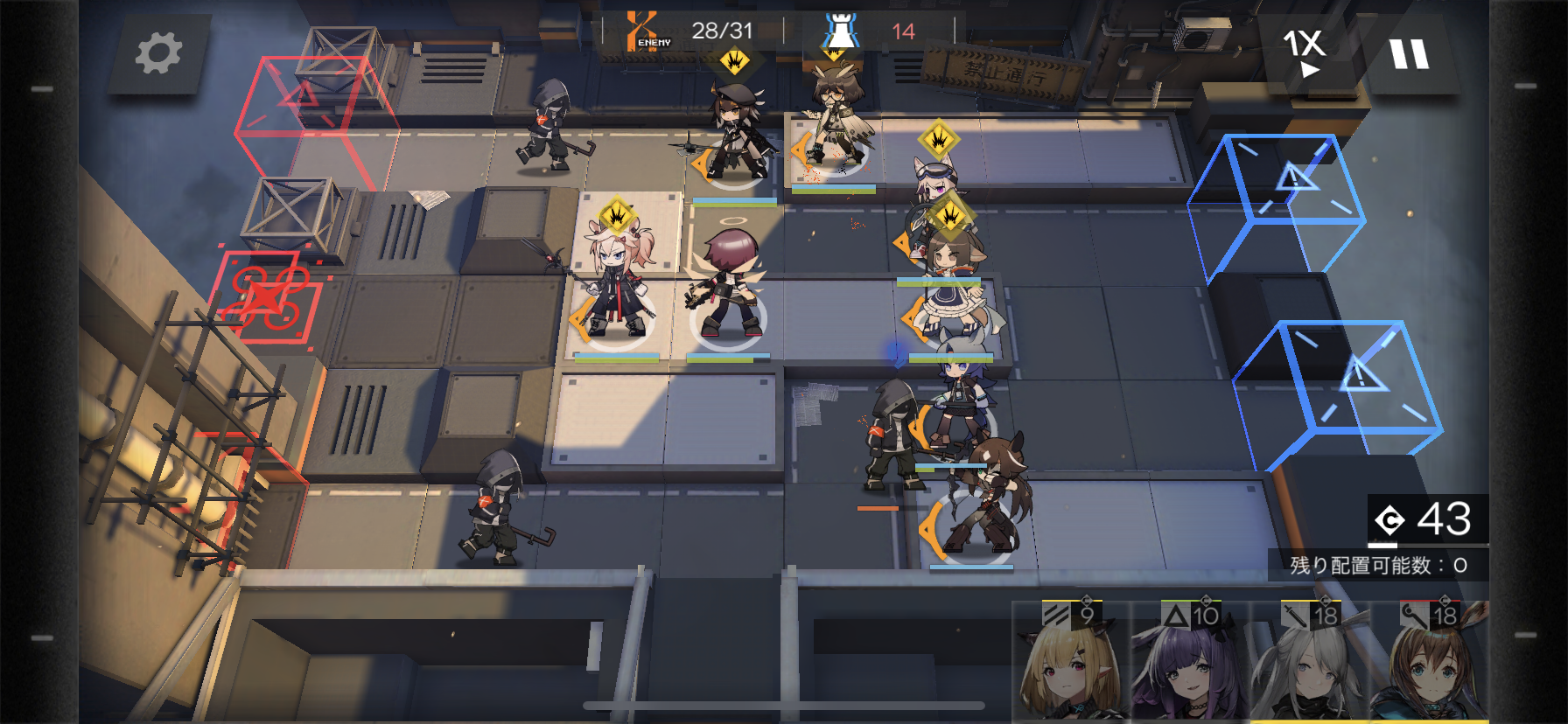 コストの数値はオペレーターごとに決まっており、高コストのキャラばかりでパーティーを組んでしまうとオペレーターを配置できず、そのまま攻め切られて敗北…なんてことも。