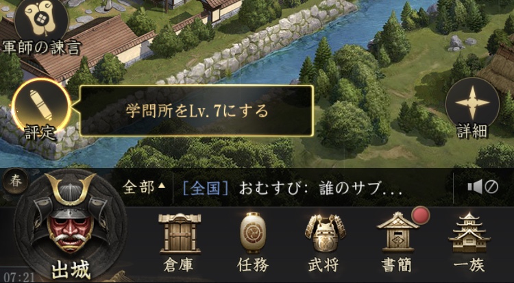 | ② | 城内で内政等を進行する(見識を上げるアイテム兵法を入手できる環境を作る) |