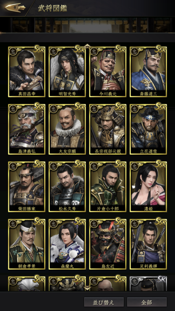 武将には、R/N武将、SR武将、SSR武将があり、SSR武将がレアリティの最高となります