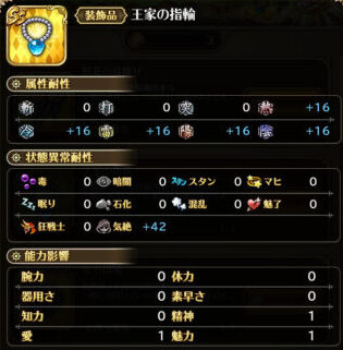 精神・愛・魅力のステータスも盛ることができるので術使いのキャラに装備させましょう。