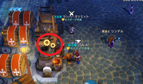 各道具が設置されている場所には「歯車のマーク」が出ているのでわかりやすいかと思います。