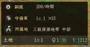 そして、城外の土地を占領することで、時間ごとに入手できる資源が増加します。