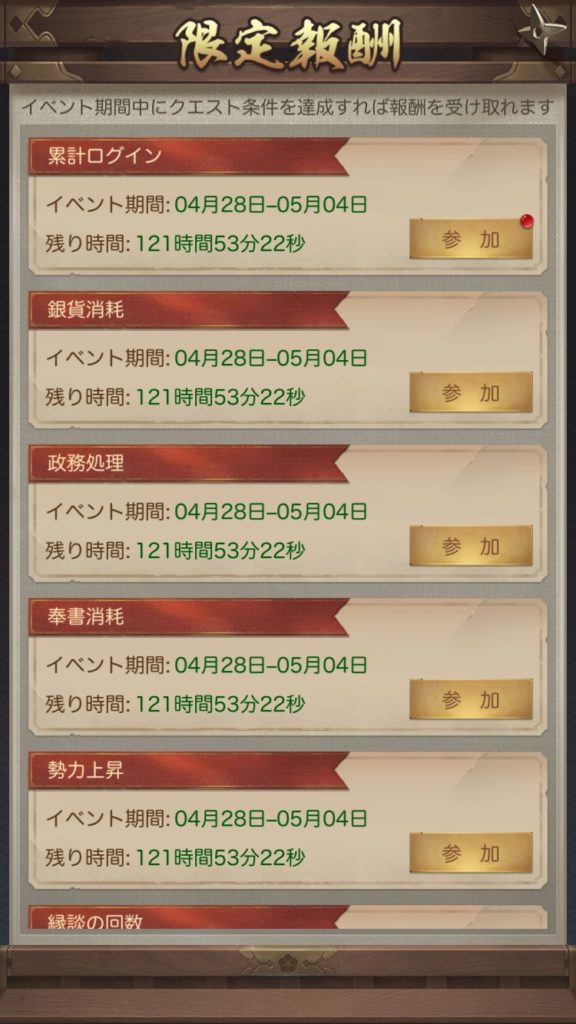各イベントによって異なりますが、報酬にはアイテムやイベント限定の美人や家来を入手することが可能になっています。