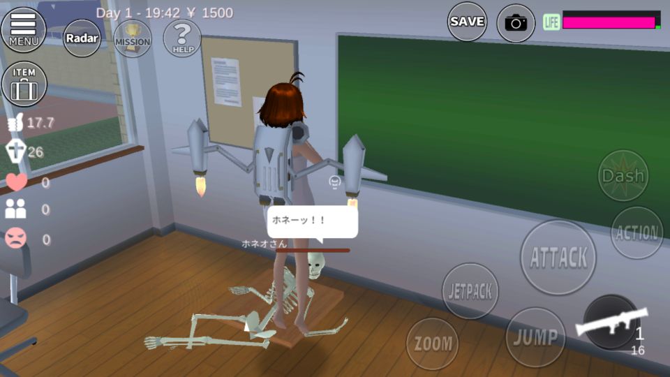 サクラスクールシミュレーターのお金稼ぎ・ホテル・ライフ回復・骸骨について。