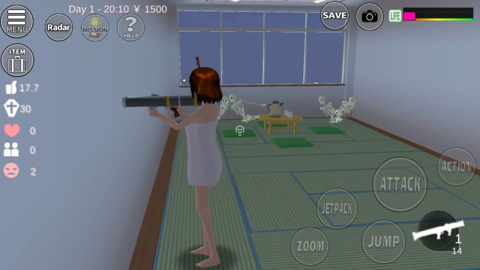 学校の骸骨はロケットランチャー一発で倒すことが出来るので、見つけ次第発射し仕留めましょう。
