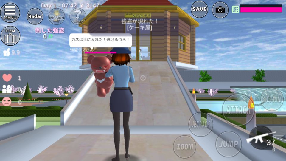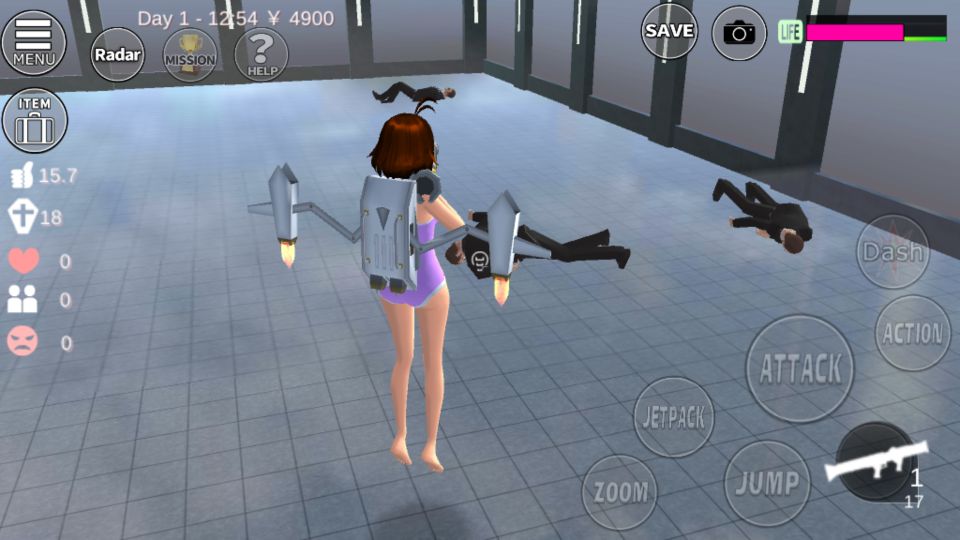 ジェットパックを装着した高校生となり、青春やバトルなどなんでもありの高校生活を体験できるスマホアプリ「サクラスクールシミュレーター」の紹介記事です。