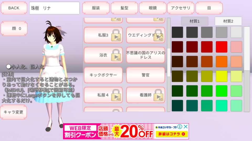 見た目や能力は多種多様な上、解禁方法も広告を見るだけなので、様々な服を試してみましょう。