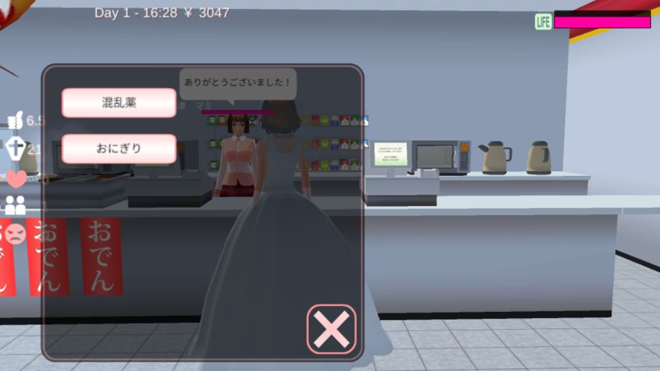 コンビニなどで買える食べ物は、住民にプレゼントすることが出来ます。