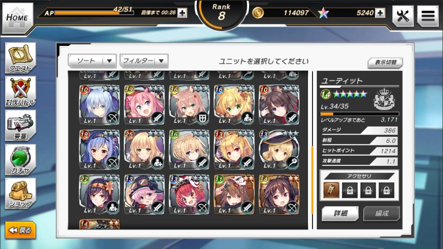 要塞少女において、バトルで戦わせる美少女キャラクターのことを「ユニット」と呼びます。