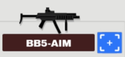 BB5‐AIM | スコープ付きのサブマシンガンです。 移動速度は高く、ヘッドショット率はトップクラスです。 |