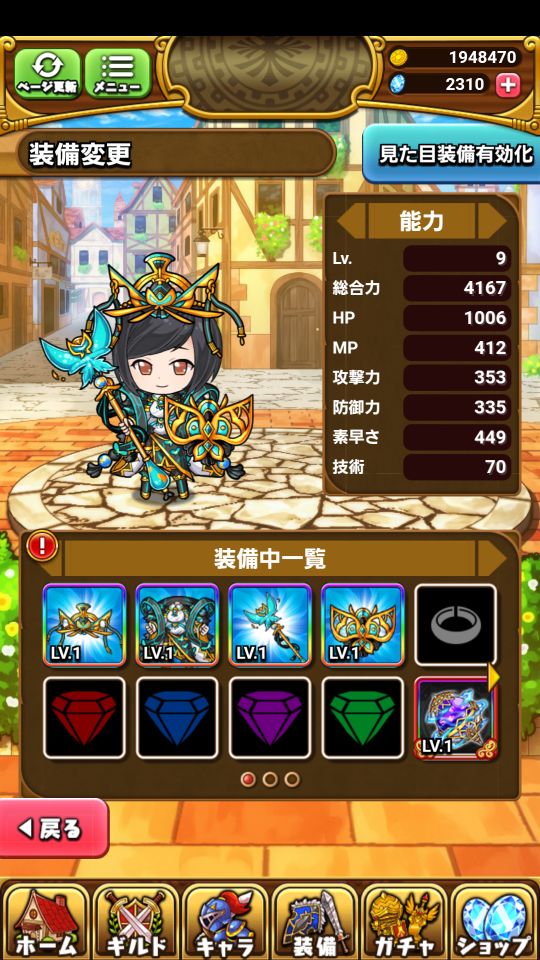 装備は頭・胴・右手・左手の4種類があり、それぞれの枠ごとに装備を付けることが可能です。