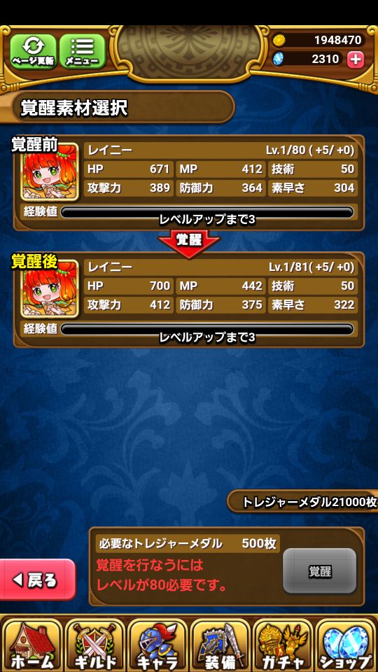 トレジャーメダルに加え、専用素材「覚醒の結晶石」が必要となります。