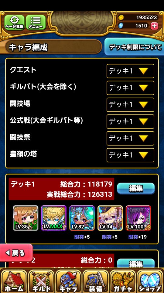 闘技場デッキと同様、★8キャラ1体制限とイベント専用育成キャラ・同一キャラの編成禁止の制限が設けられています。