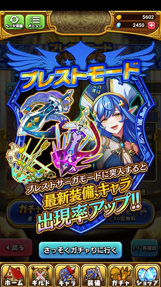 ブレストのガチャは、時間内にガチャを連続で引くことで目玉キャラ・装備の排出確率がアップする「確変モード」が存在しています。