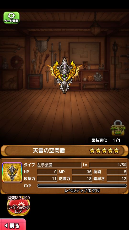 「天雷の覇冠」「天雷の覇鎧」「天雷の空閃剣」「天雷の空閃盾」の4つの装備です。
