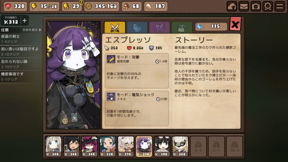 ゴールドやクリスタルを使ってキャラクターを強化できます。