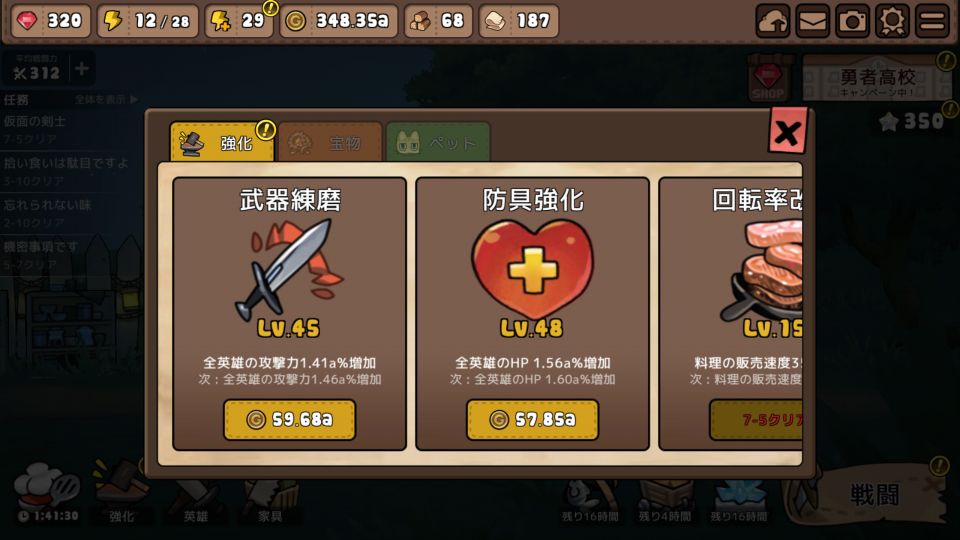 料理と強化を繰り返し、キャラクターである英雄たちの戦力を強め、強敵を打倒しましょう。