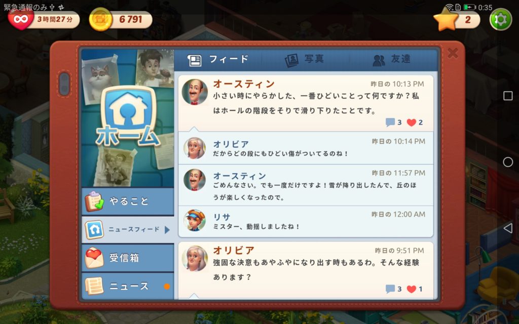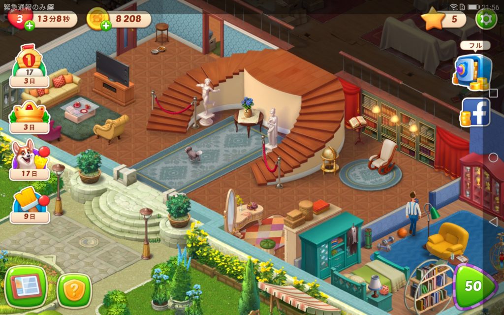 家具や部屋がきれいになってきたり、家族のやり取りなども面白く、次へ次へと進みたくなる要素が満載です。
