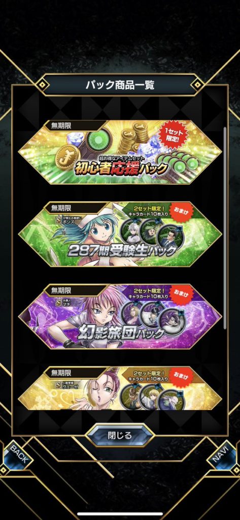 初心者パックは限定1セット・価格980円でジェニー1089。(オマケ:ガチャチケット10枚、念石100個)