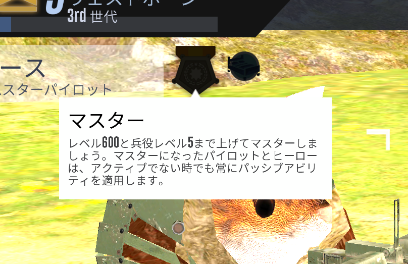 ヒーロー、パイロット共に「レベルを600」、「兵役を5」まであげると非アクティブ(出撃していない時)の時でも永続的な効果を得ることができます。
